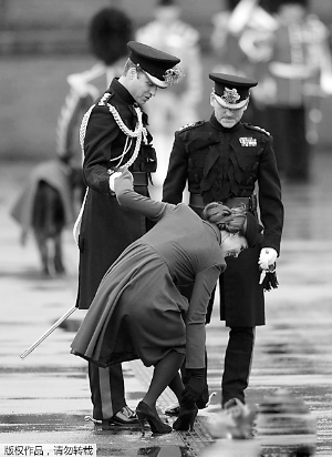 在英國(guó)奧爾德肖特,威廉王子和凱特王妃視察愛(ài)爾蘭衛(wèi)隊(duì)第一營(yíng),出席那里舉行的圣帕特里克節(jié)游行時(shí),懷有身孕的凱特王妃的高跟鞋細(xì)跟不慎卡入排水管中,凸顯尷尬。